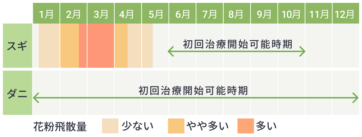 初回服薬開始時期がスギ花粉が飛散していない6月~11月初旬の期間のみ治療を開始することができます。