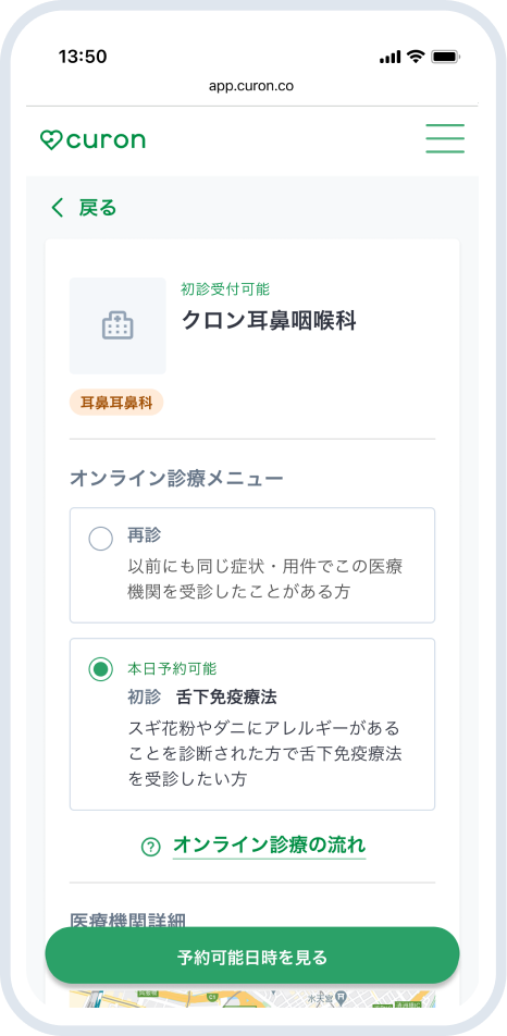 初診から1ヶ月はアレルギーの検査と様子見期間で対面診療でしたが、その後はお薬を受け取ることがメインなのでオンライン診療を利用してます。今のところ負担なく継続できていてありがたいです。